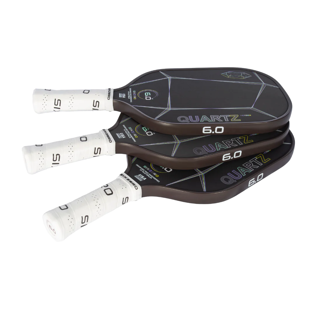 Introducing the Quartz Line of Pickleball Paddles from Six Zero Pickleball – the perfect blend of performance and affordability. Designed for players who demand quality and performance without breaking the bank, The paddle offers an accommodating all-purpose design that has a large sweet spot resulting in amplified control, generous power and pop. The Quartz has a single one-piece unibody construction that ensures durability and strength. The Quartz boasts an impressive twist weight of 6.4 guaranteeing enhanced stability and power on the court.